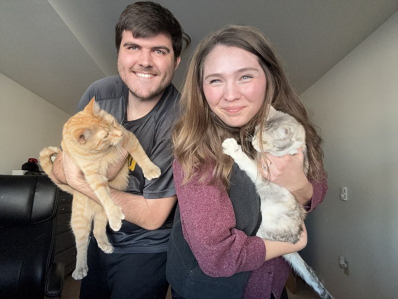 He currently lives with his wife, Taylor, who is an elementary teacher in the local school system. They also have two cats: Buyo (7 years, right) and Fred (1.5 years, left). He is very involved in the disc golf community within Eau Claire, serving on the board for the Chippewa Valley Disc Golf Organization (CVDGO), as well as the tournament director for the Tower Ridge Open. He also enjoys spending time with friends playing board games and card games!